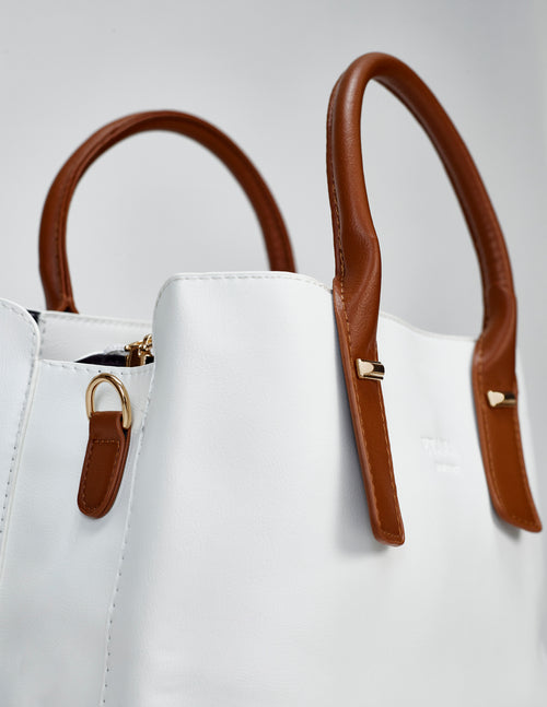 Die Hudson Tote in Porzellanweiß ist elegant und stilvoll mit einem klassischen braunen Riemen. Sie ist aus luxuriösem, porzellanweißem Leder gefertigt und ihr zeitloses Design ist ideal für jeden Anlass. Sie bietet die Flexibilität, sie als Tragetasche oder Umhängetasche zu tragen.